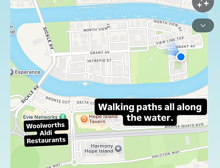 We live at Hope Island. Close to grocery stores, amazing restaurants, Hope island Tavern and paradise point beaches.