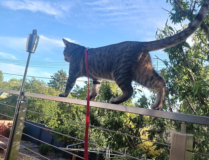 1 cat to feed, play with, walk in garden and change litter.