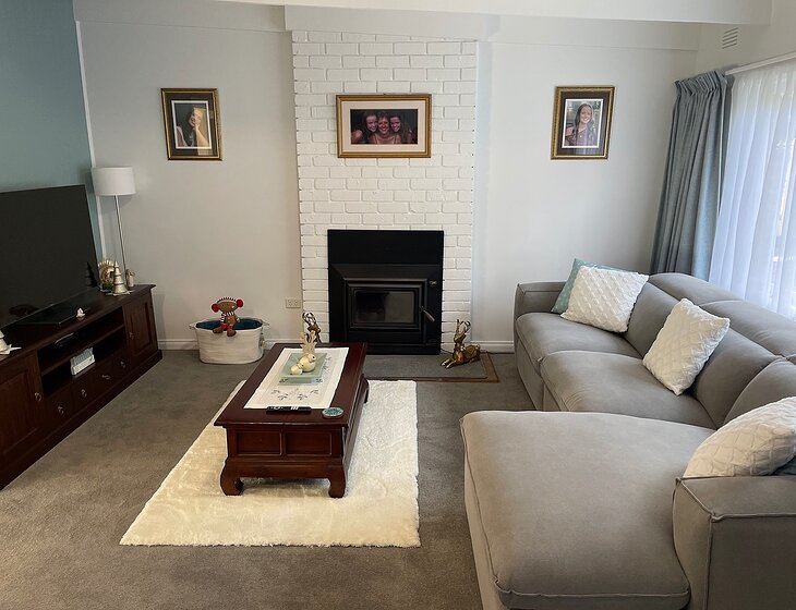 I have a 7 yo pug who require daily medication ( 1 pill with dinner ). He is used to having someone home at some time of the day. He does not require walking. It is a large three bedroom house with a spa ( in summer) , entertaining deck and large yard. Two living areas. There is cooling and ducted heating and a split system in the bedroom as well. Beautiful HURSTBRIDGE is a little town 35 k from Melbourne CBD. It is at the end of the train line which is walking distance from the house, as are the shops and restaurants.