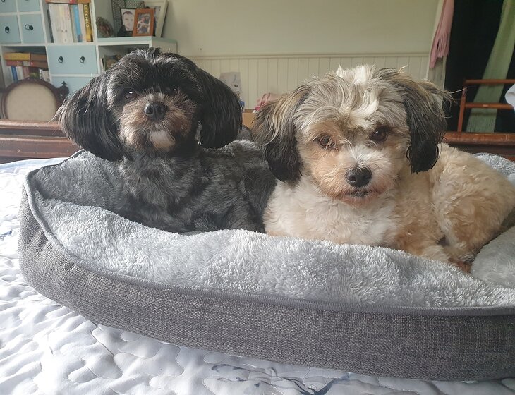 I have 2 small gorgeous Maltese x terriers who will want lots of love and cuddles...inside dogs who don't lose hair and sleep on the bed.