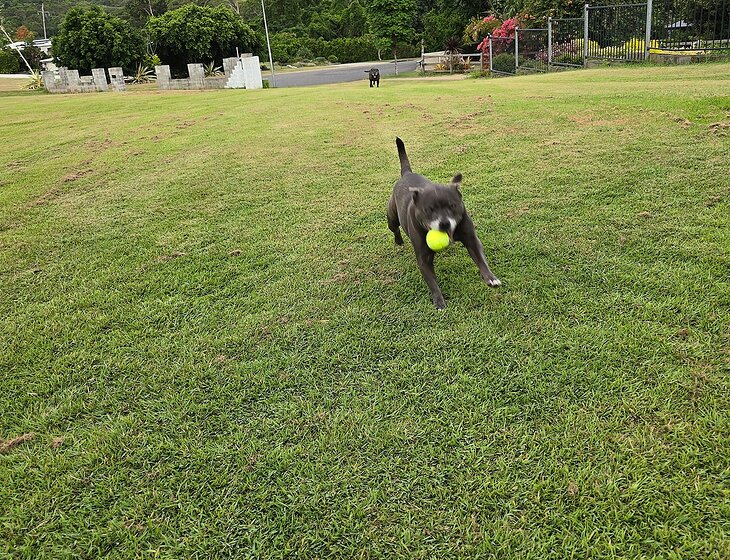 The property is surrounded by fruit trees and shared with our two mature aged English Staffies. They are relaxed, independent, and very much part of the landscape. They are primarily outdoor dogs (except during storms), so an outdoor-loving house sitter would be ideal. Their easygoing nature also means day trips to the islands are absolutely possible while house sitting.