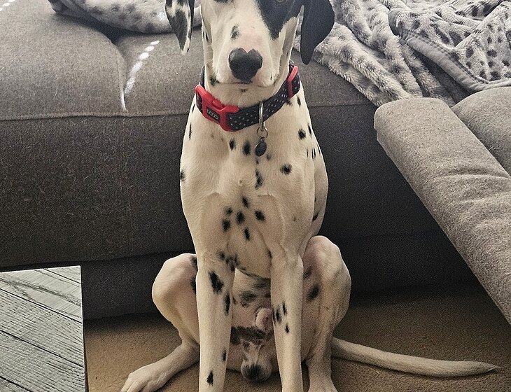 We have a Dalmatian named Vito - he is 2.5 years old and a cat named Massimo - he is 13 years old.
