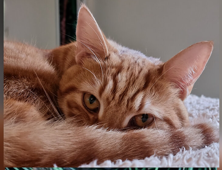 Buddy's a lovely guy who we've had since he was 8x wks old. He loves a play with his bear, have a little wander outside & if he's not watching what we're up to, he just chills in one of his fav quiet spots. He sometimes likes to chase his little sister & pretend he's the boss. Bea will occasionally chase him back to show she's not scared of him, even tho he's twice the size.