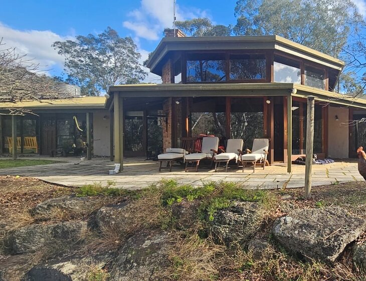 A gorgeous house on five acres overlooking the Yarra river, only 45minute drive from the city but it feels like the country. The outlook is divine, the gardens beautiful, and it is quiet. The house is stunning, fully equipped and very comfortable, with an atrium loungeroom with large fireplace, and high speed unlimited internet, and outdoor spa. No stairs throughout the house. There is a small enclosed orchard and garden beds, and a beautiful garden that requires little work. Our dog Lula is a loving, friendly, obedient 10yo American Staffy. She always stays close by, and lets the kangaroos and ducks meander past her without batting an eyelid.