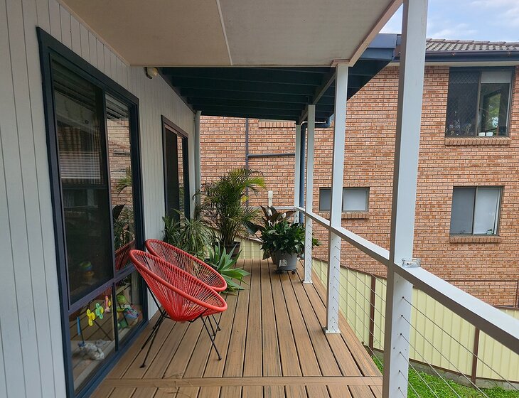 You will be staying in the guest queen bedroom which is located on the same floor as the living area, and will have access to both bathrooms on the top and bottom floor. There is a large open plan, kitchen, living and dining area. Plus a large sunny back garden and front veranda for bbqs and relaxing in. Maximum two adults.