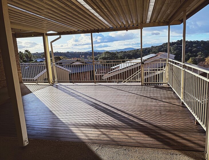 Located just south of Canberra in NSW. 15mins from Canberra airport, 30mins from Canberra City, 10mins from Queanbeyan District Hospital. There is room for a caravan & there's a bus stop just across the road. Two spare bedrooms available, if you have an extra adult or teenager. Enjoy relaxing on the large back deck with BBQ, view & night lights. There is a walking track along the river which is pleasant with wildlife down there including wombats. We have an indoor rabbit and two outside dogs who are low maintenance but love human interaction & food!