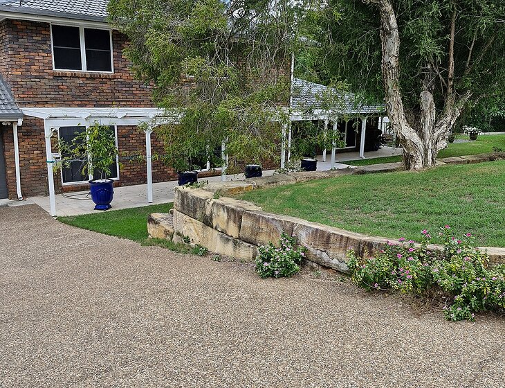 5 bedroom home on 2 acres with reverse cycle air conditioning throughout There is a salt water pool that is heated. We are 30 minutes from Brisbane CBD and Indooroopilly shopping centre and 60 minutes from the gold coast. The suburb is considered part of Brisbane but it is the last suburb west before Ipswich. There is a supermarket 10 minutes away by car and a local store bottle shop and bakery within a ten minute walk. Chickens and dog will need caring forand the sheep and goat will need checking every second day for water. The flower garden will need watering as well as the fruit trees. The grass may need mowing depending on the weather. We have both a ride on and a self propelling mower. The vegetable garden will have produce in it and you are more than welcome to it if it is ripe.