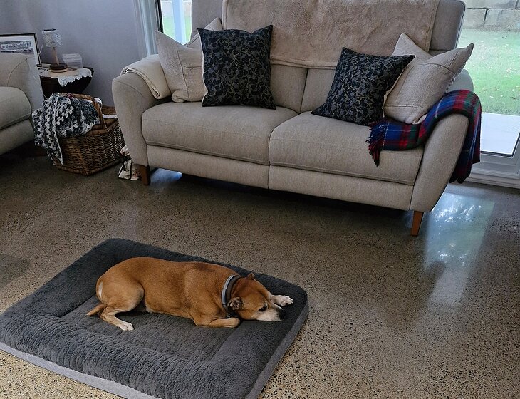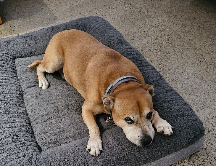 The dog is very friendly with people, he spends most of his day following you around. He is now 12 years old but still has a lot of energy, he also sleeps well. We shut him up if we go out and he sleeps in the house in a bed.