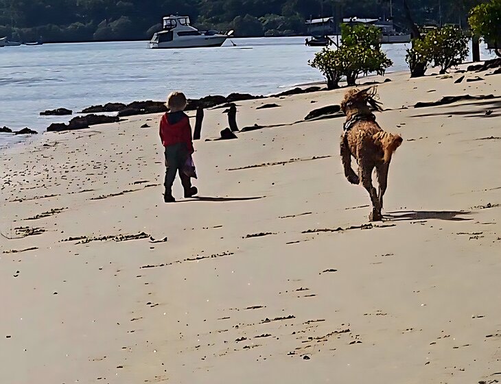Pretty 2 Story, 2 bed 2 bath Cottage, close to the beach. on a small island in Morton Bay. Access by both barge and passenger ferry. Public transport is capped at 50 cent per trip even to the city. Inter island travel is free. I have an old labradoodle (15year) and a Groodle who is almost 4 and works as a therapy dog. They need to be walked each day they like the beach. Benson the old dog can't walk fast or to far. Both are very friendly with both humans and other dogs.