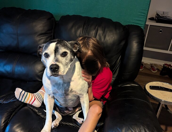 Lulu is great with new people, she really enjoys a snuggle on the couch some quality tele time. If you are in the back yard she will be too, waiting for you to throw a stick for 5 minutes.