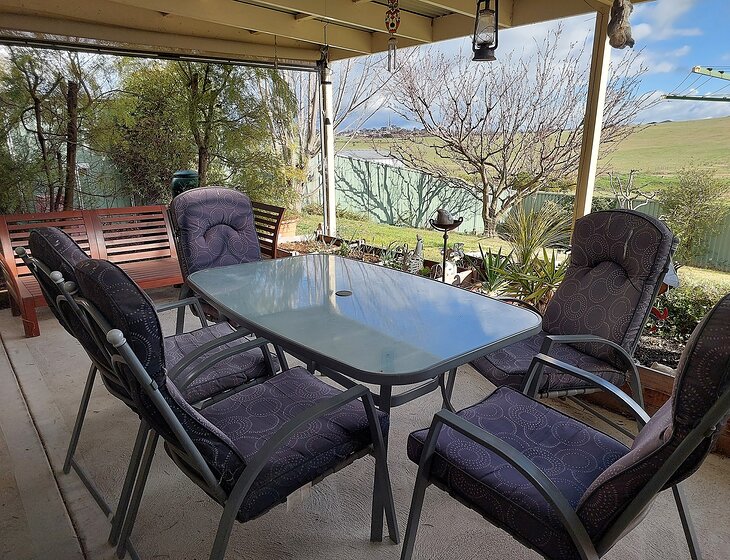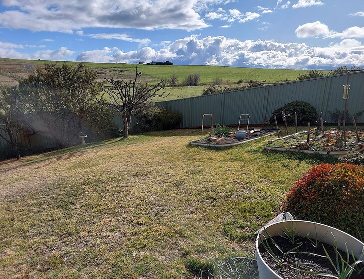 Our back yard has a lawn area and is also quite productive. The apricots and strawberries will probably be ready to eat during your stay. A variety of birds are regular visitors to the back yard - we consider the wrens, willy wagtails, and magpies family, and the silver eyes, thornbills and finches good friends.