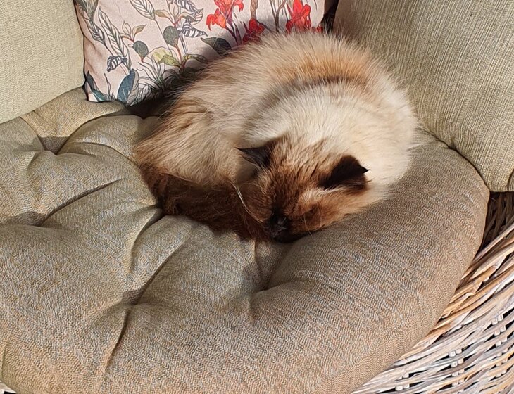 I have two cats Muffy and Tia. Muffy is a senior Himalayan and Tia a black moggie.