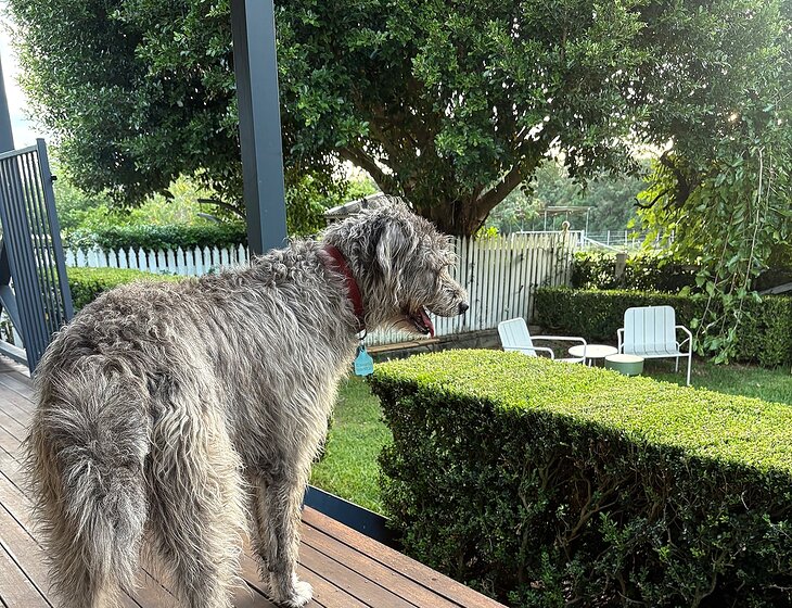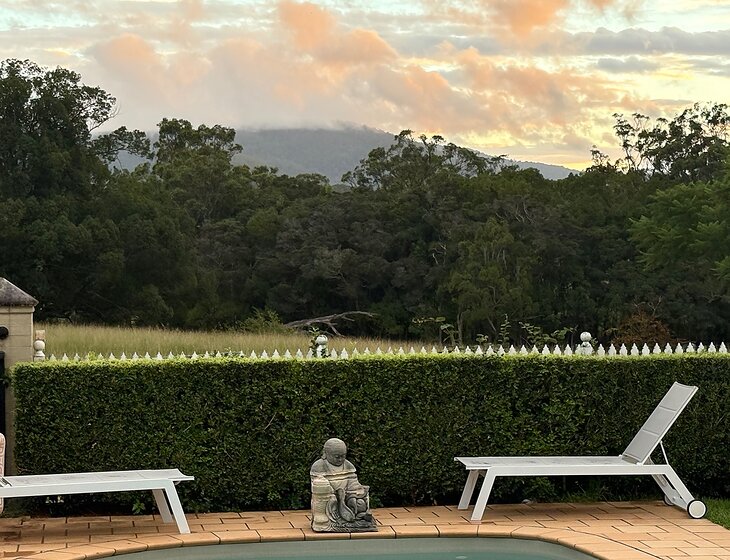 Original high-ceilinged farmhouse on five acres, comprehensively renovated in 2001 to create a comfortable modern home with a traditional country feel. Own guest room or accommodation in repurposed original dairy farm building, renovated to a contemporary high spec, or just park your van at either the main house or Dairy and use our amenities. Two large mature dogs (inside/outside), two cats (strictly inside), chickens (stay in coop) and two donkeys plus a horse all require company and feeding. Property is exactly halfway between two picturesque villages south of Port Macquarie, 2 minutes off the Pacific Motorway. Opposite a golf club.