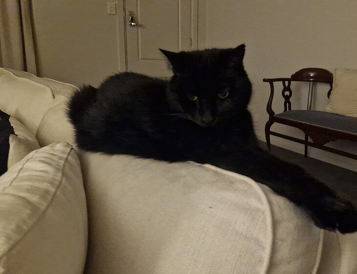 We have one very affectionate and gentle indoor cat named Sebby, so daily feeding, cat cuddles and tray cleaning are required.