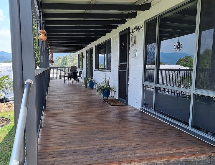 Our home is a two bed, one bathroom open plan home situated in a quiet village at the base of the Snowy Mountains. Reverse cycle heating/cooling.