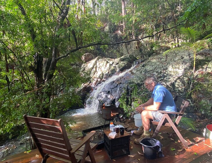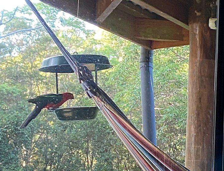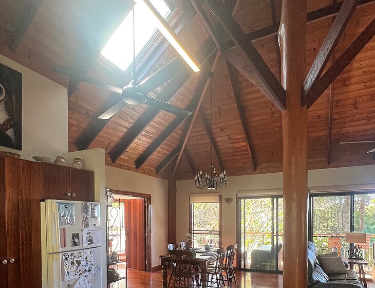 A beautiful private pole home set on a hill surrounded by birds, bush and rainforest with our private creek and swimming holes .
