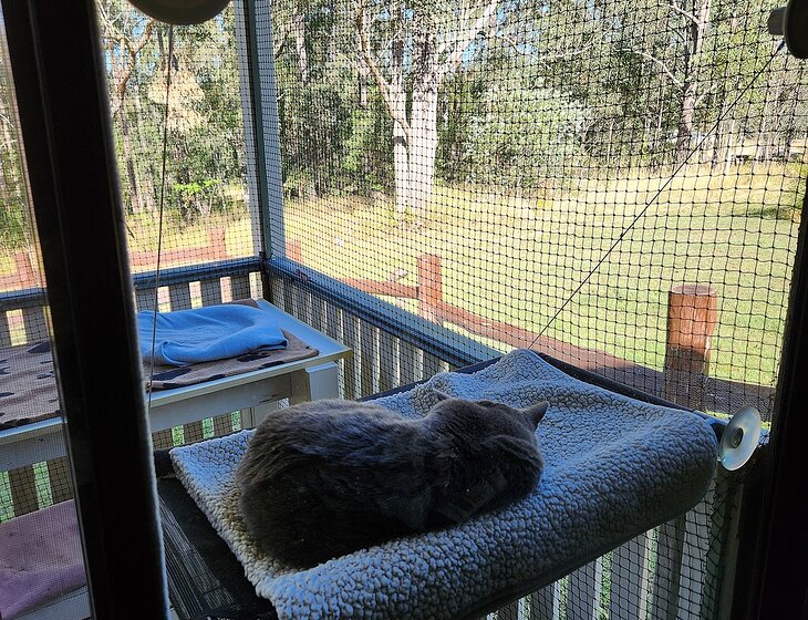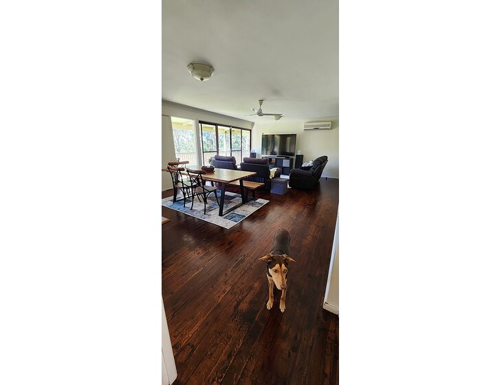 We live in a 3 bedroom country house. You'll be sleeping in our main bedroom with the cat to keep you company (we have other options if you prefer not to sleep in the same room as the cat). There is one bathroom, a kitchen with a dishwasher and a spacious living/dining area. We have a wood burner in the living room to keep you warm. One of the bedrooms has been turned into a library, so plenty of books to read while you are staying. At the back of the house we have a veranda that looks out over our own bushland and is a perfect spot for breakfast and a coffee with the morning sun warming you up. At the front of the house we have a sitting area that looks out over the mountains and a big yard where the dogs will spend most of their day.