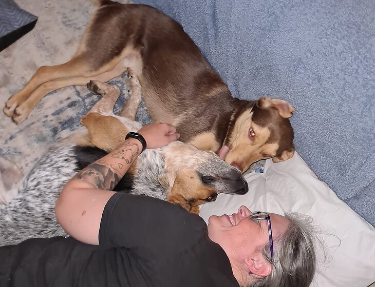 We have a 2 year old kelpie named Obi (male) and a 4 year old Australian Cattle dog named Billie (female). They are very active, live inside but they love to be outside most of the day. They enjoy walks, fetching balls, food puzzles and cuddles. We would like someone who doesn't leave them home by themselves all day, so they get the attention they need.