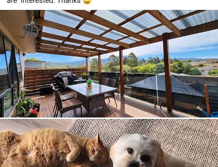 We are looking for a single person who is caring and respectful. It would be ideal if you worked from home or if you were retired as our dog Harry is used to someone being home most of the time. Harry is a maltese shitzu and is 5 years old and needs anti anxiety medication. Our cat Maisy is 6 years old and is easy going. Harry needs a short walk each day. Our house is only 5 mins from local shops, kingston beach and blackmans bay.