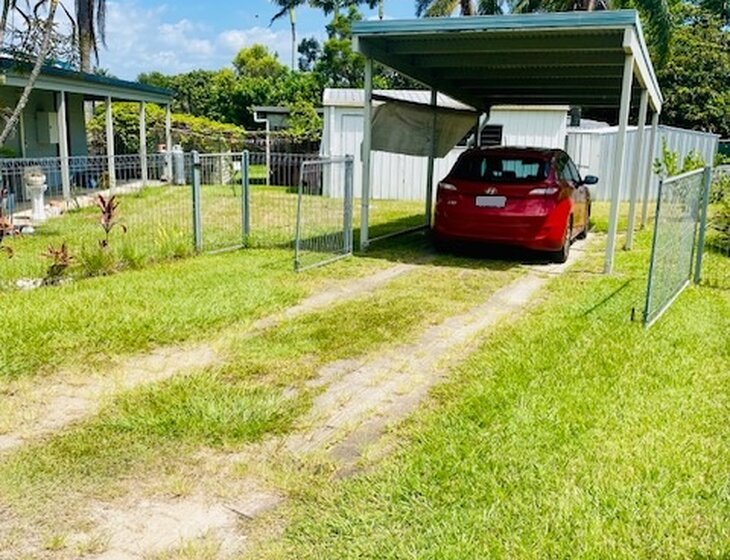 Separate carport behind a gate gives car protection.