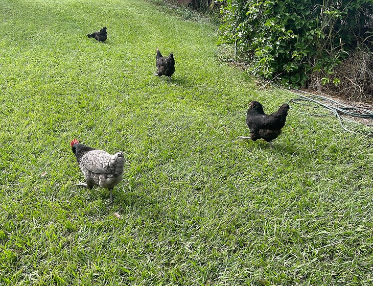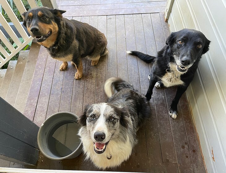 3 dogs and 6 chooks.