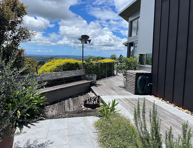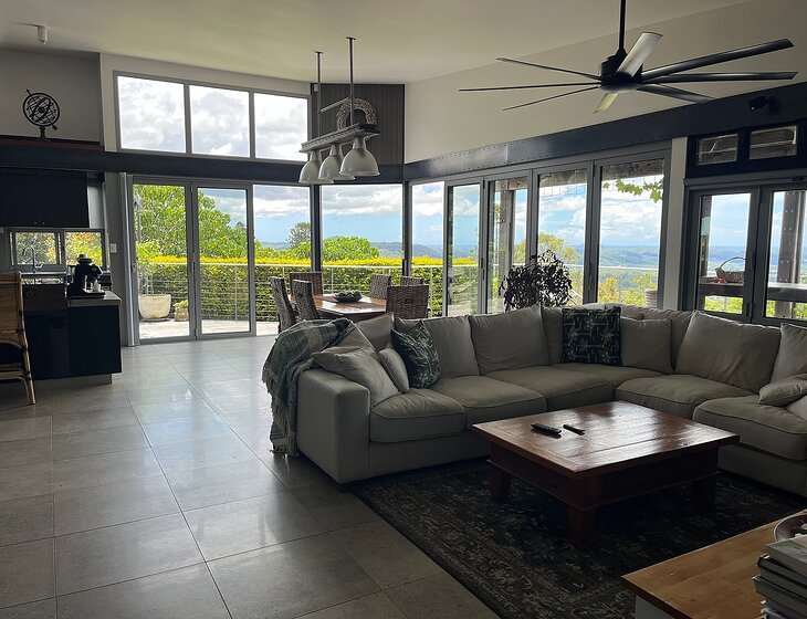 Our home is a modern sustainable home in the lower foothills of the Blackall Range close to Mapleton and Nambour shopping district. 25 minutes drive to local surf beaches. And, 25 minutes to Maroochydore which is the hub of the Sunshine Coast.