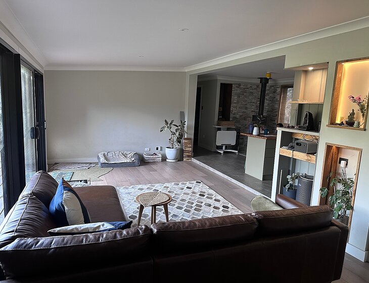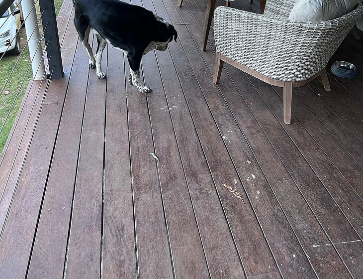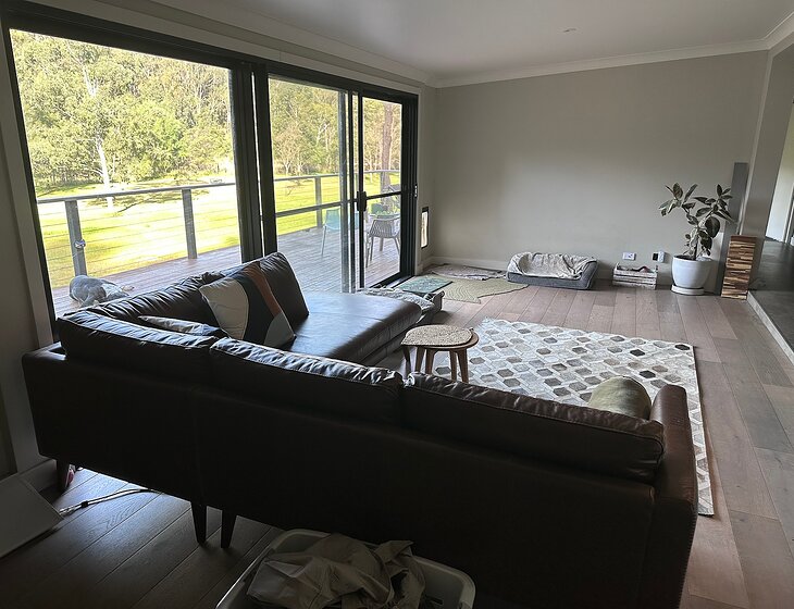 We have a two bedroom house with an open living area and one main bathroom. Our house / pet sitters will be staying in the spare bedroom. Yogi Bear and Boo Boo have the option to sleep inside on their beds or outside on the deck.