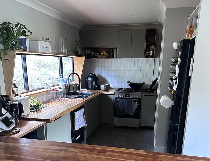 The house uses mains power and gas bottles for the stove top in the kitchen and heated water. The property uses tank water.