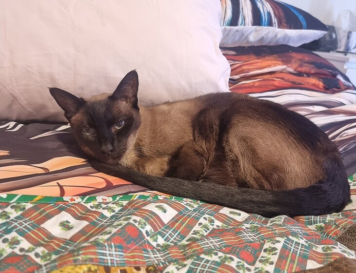 My cat "Shadow" is 14 yrs old this year. She's no trouble at all, just sleeps alot, but needy for affection and loves to sit on your lap when you're on the lounge and sleep next to you at night if you want lol, she doesn't like to be picked up and held though. She doesn't bite or scratch, very chilled and friendly. She likes to have a little playtime in her tunnel and wand toys. Loves to be groomed with her brush. More detailed info on her routine to whoever stays. 😀