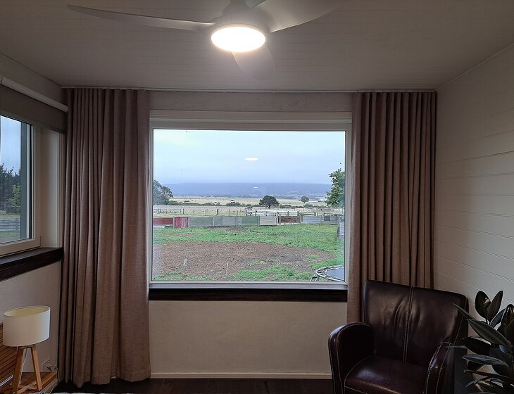 We are in the idyllic town of Lancefield in the Macedon Ranges in a very comfortable newly renovated home with a large kitchen, open plan living area and hydronic heating.