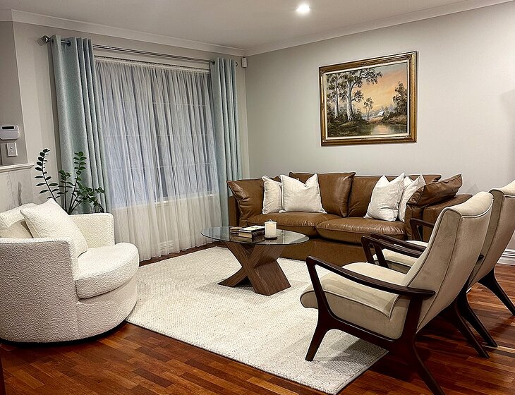 3 bedroom modern home plus home gym and swimming pool. Ample parking space including space for a caravan. Enclosed lock up garage. We have a one year old male ragdoll cat named Leo. He is an inside cat and has his own access to an enclosed cat run outside the laundry via a cat flap. House is walking distance from lovely parks, supermarket and a brand new public library. Public transport is available nearby.