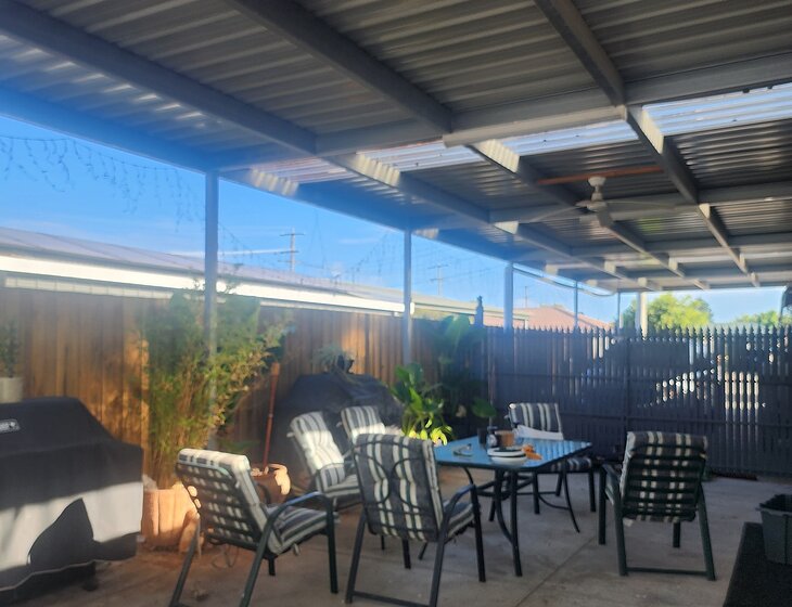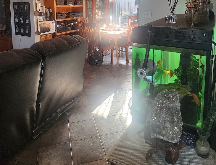 We have old style 3 bedroom house,1 English staffy she's 11,years old. Few fish, had a fruit trees at the back. No cleaning needed maybe water all the plants once if the weather too hot maybe twice. Dog can stay outside all day but she's sleep inside at night.