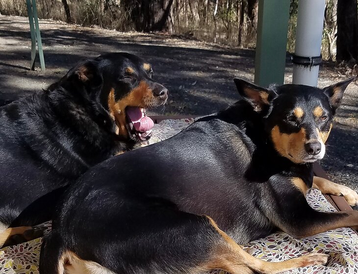 I have two kelpies Diesel and Daisy (brother and sister)who are 11 years old and a very gentle and trusting. They are well behaved and don’t jump up on people. Diesel is very sociable and loves to say hello to everyone. Daisy is also good with other dogs and loves people. She always keeps close to me.