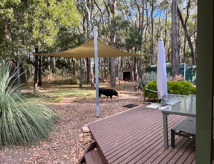 My home is a three bedroom home set on an acre of bushland in the Adelaide Hills. There is a comfortable queen size bed in the spare bedroom and in the main bedroom there is a king size waterbed. The other bedroom is used as as an office. It has a large open plan kitchen dining lounge area with a slow combustion wood fire. The kitchen is clean and modern. There is a shed in the backyard that has an open area with a clothesline undercover. I also have a clothesdryer and large washing machine.There is one bathroom, The toilet is in a separate room.You will need a car as I am not close to public transport. I may consider lending my car but I would have to check if my insurance would cover that.