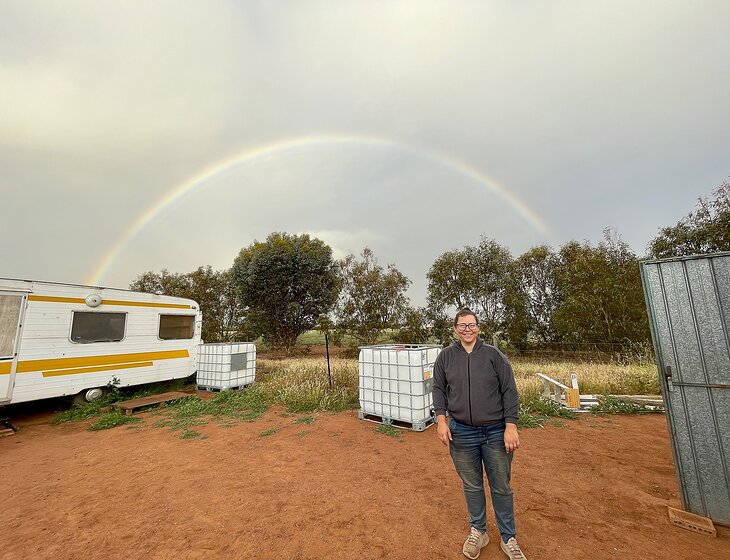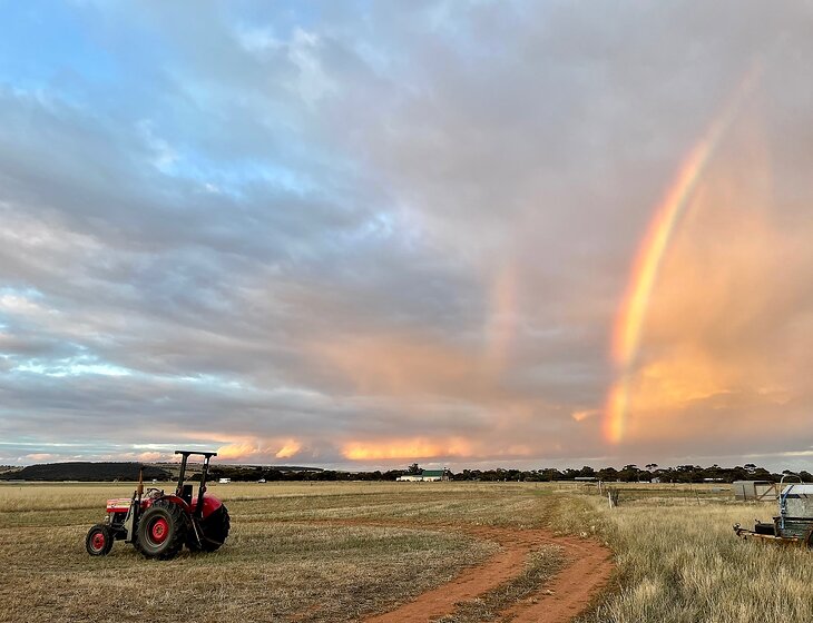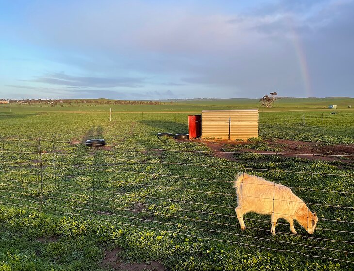 We’re a family of three with a 10-yr-old son. We live in caravans on our 11-acre homestead, waiting for development approval on our house. We have three dogs, goats, chickens and ducks who are all pretty easygoing and easy to take care of. We have an Atco open plan prefab building which guests would be welcome to use; camp shower and toilet. Solar and battery power to the main van at the moment, with backup generator for van and laundry. It’s all a bit rough-and-ready, but comfortable enough for us to have sold our house in town after a trial year so we can focus on the farmlet. It would be nice to get away for a brief family vacation and leave the place in capable hands, but we’re not averse to a bit of company if someone wanted to stop for a bit while we’re here. We’re only 10 minutes from the lovely coastal town of Tumby Bay, with all amenities.