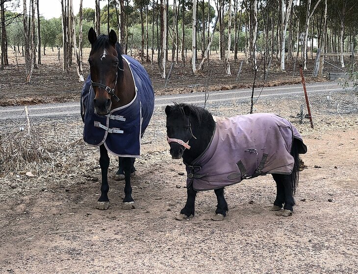 Horses and dogs fed morning and night. Chickens need to be let out in morning and locked up in evening.