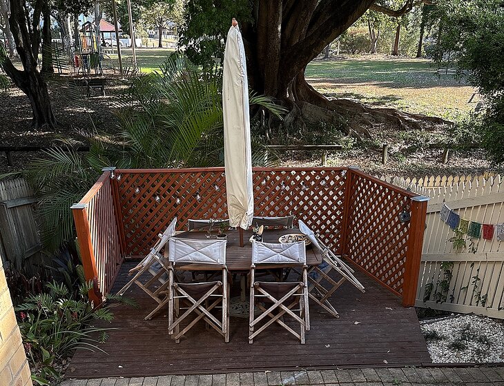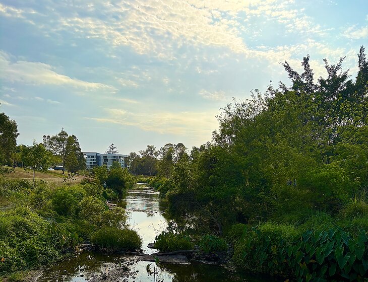 The backyard is a lovely park and Kedron brook is less than 100meters away. Bus stop nearby with shops walking distance