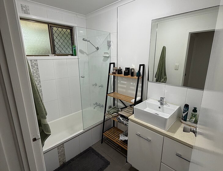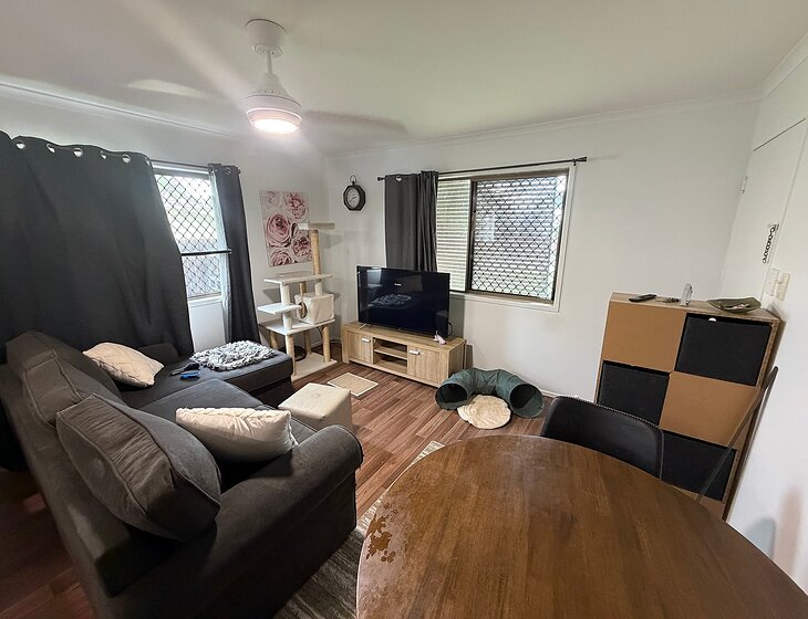 About the house: A small ground floor 2-bedroom unit, attached to 1 other unit. Decent living area with tv, 1 toilet, 1 shower over bath, main bedroom with queen bed and tv, second bedroom only used as storage, washing machine, large backyard with clothesline. The exterior does not require much maintenance, only to mow the lawns, weeding and clear away branches.