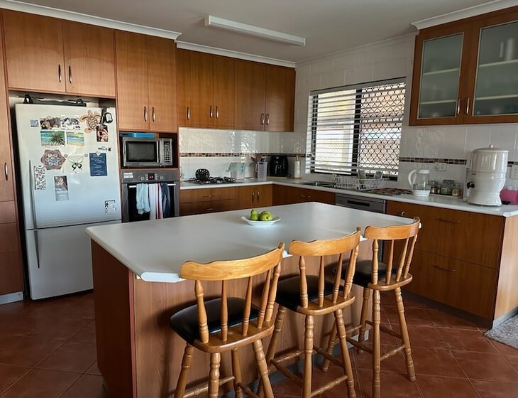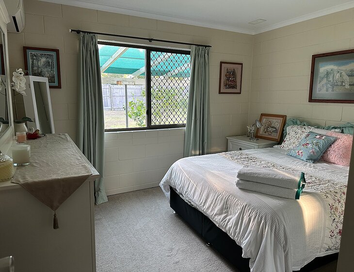 Comfortable 3 Bedroom (2 available for your use), 1 bathrm, large open living area, laundry, sheltered cool verandah. Fenced yard with electric gate. Drive will fit a caravan and car. Located in North Mackay. Easy walk to the beautiful Goose Ponds. Perfect for bicycles - great bike paths all over Mackay. Five minutes to city centre. Ten minutes to harbour. Fifteen mins to northern beaches. Explore the beautiful Mackay region, shopping, dining, reef and ranges. Day trip to the reef, or the Eungella mountain ranges.