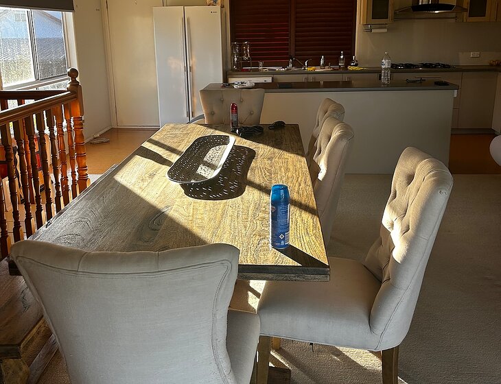 A two story house with four bedrooms and a large yard requiring some maintenance. Three dogs and two cats to walk and feed. A fully functional spa tub. Short walk to local shops and ferry.
