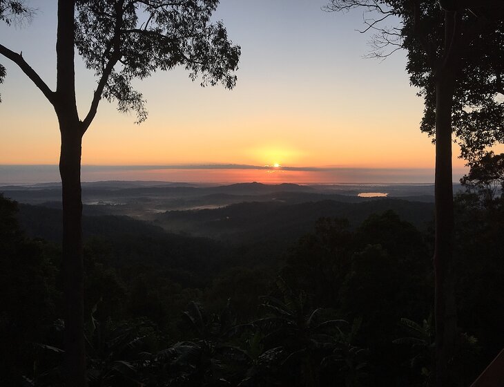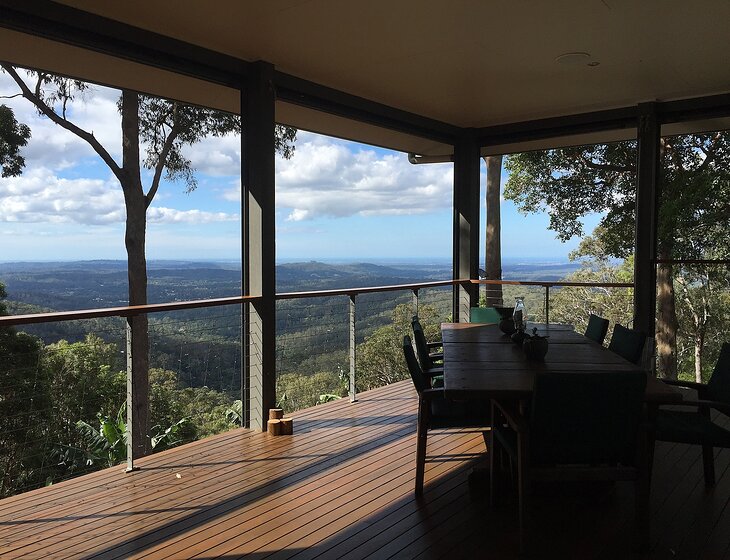 We are situated in a very tranquil spot overlooking the Sunshine Coast, with expansive coastal views from Caloundra to Mt Coolum. The property sits on 3 acres of gardens and lawns.