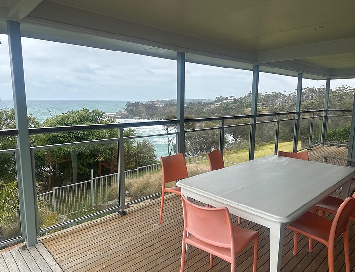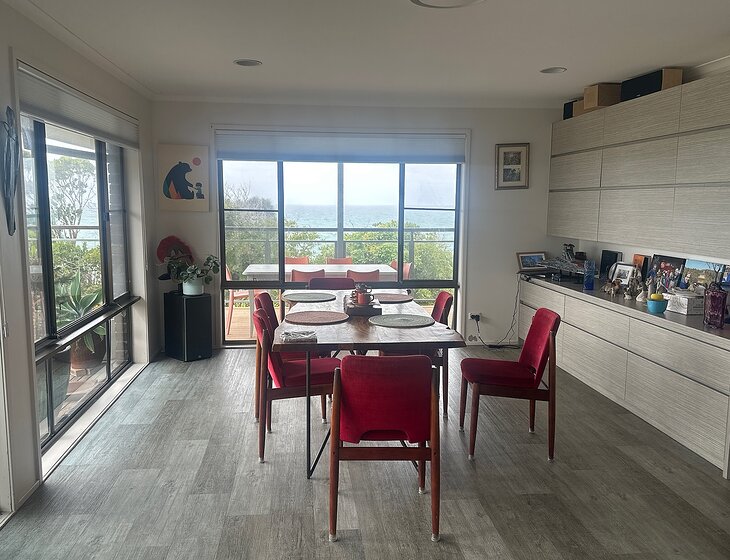 Come and enjoy our cliff top home on a coastal walk 4 bedrooms. Multiple lounge areas .Table tennis boules and games available. We have a 15 year old female Schnoodle Ava. She can be left for a few hours but loves company. Has some medication but just hidden in food. Enjoys a short daily walk to fulfill her sniff quota
