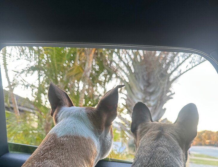 Armani is a friendly12 year old staffy who loves her cuddles and Truffle is a three year old French bulldog with lots of love and attitude to give.
