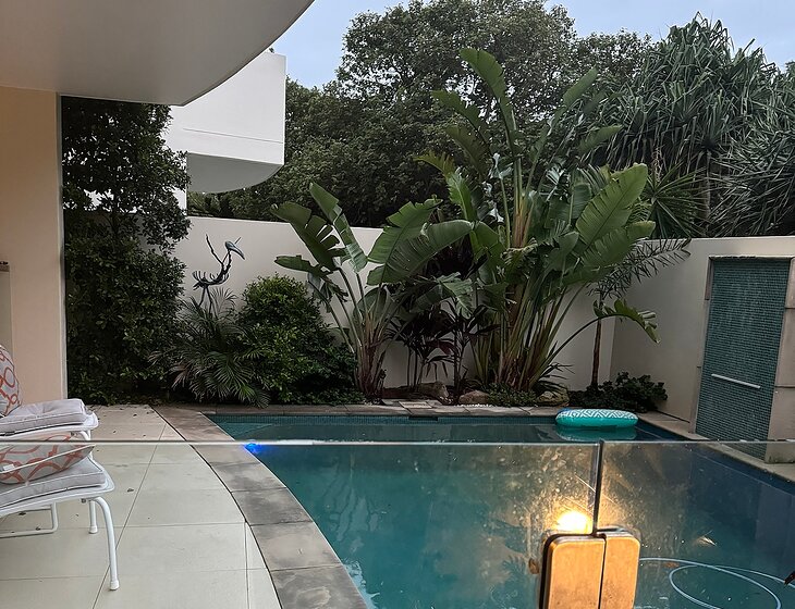 If you want a really great view out to sea and back over the Sunshine Coast hinterland you can climb the external staircase to the rooftop, which has an outdoor lounge as well as 2 chairs and a table. Great spot for morning coffee or a sunset drink.