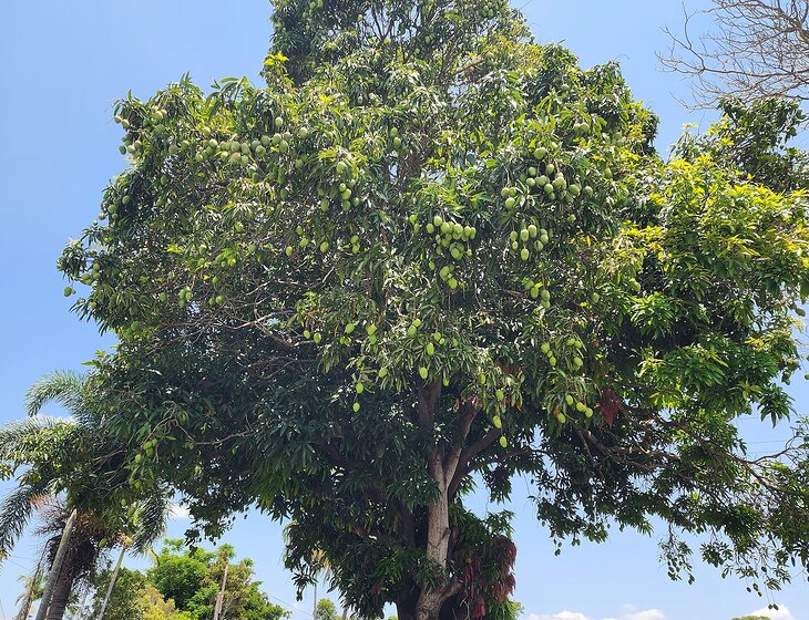 There is a large mango tree in the yard. Feel free to help yourself to mangoes.