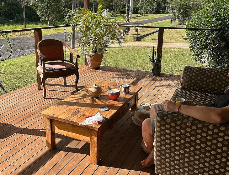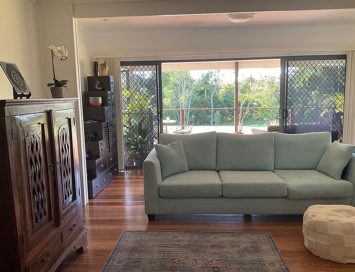 We have a lovely clean cosy 3 bedroom home with a large deck & a view. A large carport and shed. It is close to restaurants, coffee works and the pool. Great walks and creeks with waterfalls about 10mins. A drive in and lots to do.