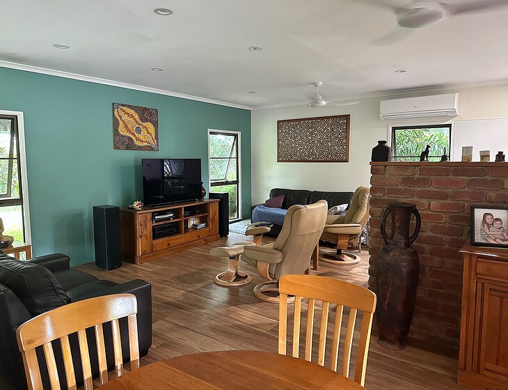 3 Bedroom low level house on fenced acreage 10 klm from Mareeba. We have a a young energetic lab Luna, Cat Loofy, confined at night. Fish tank