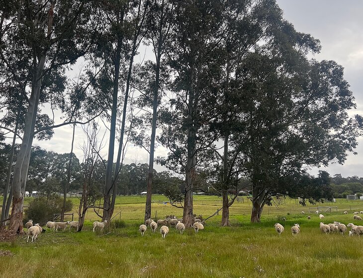 The land is peaceful and expansive, home to sheep, open lawns, a thriving vegetable garden, and a small orchard. The atmosphere is calm, grounding, and deeply connected to nature.