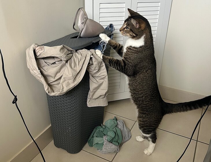 My cat does have a bit of an obsession with bras, often taking them out of my wardrobe and discarding them throughout the house. She’s a bit odd!