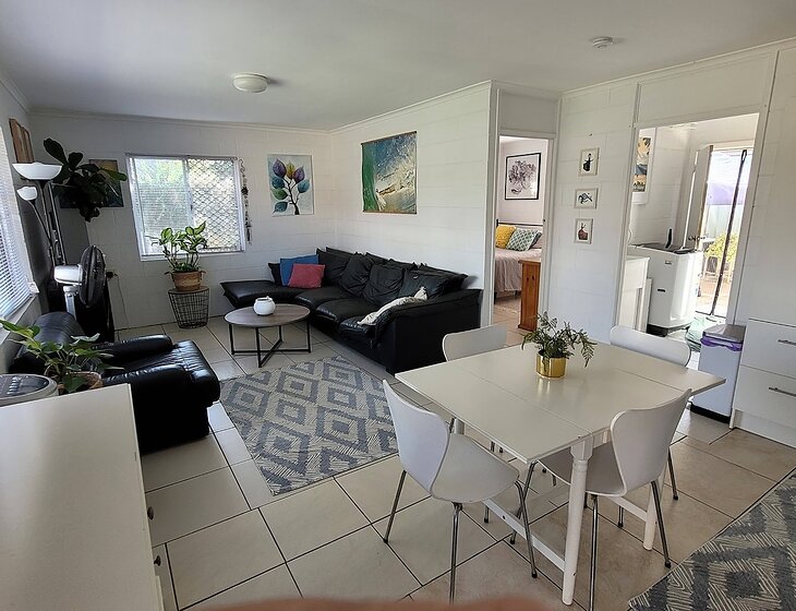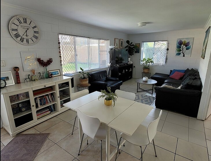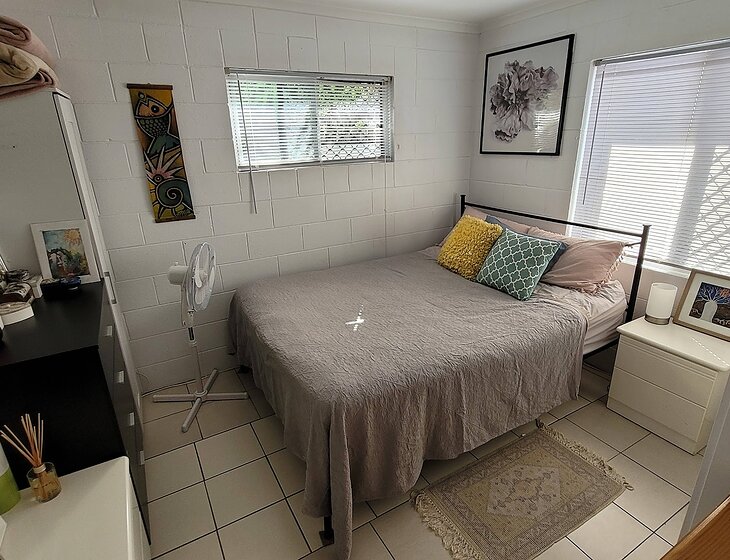 I live in an older style, small, 1 bedroom quiet duplex unit with a yard very close to the Maroochy River, beach and Sunshine Plaza.